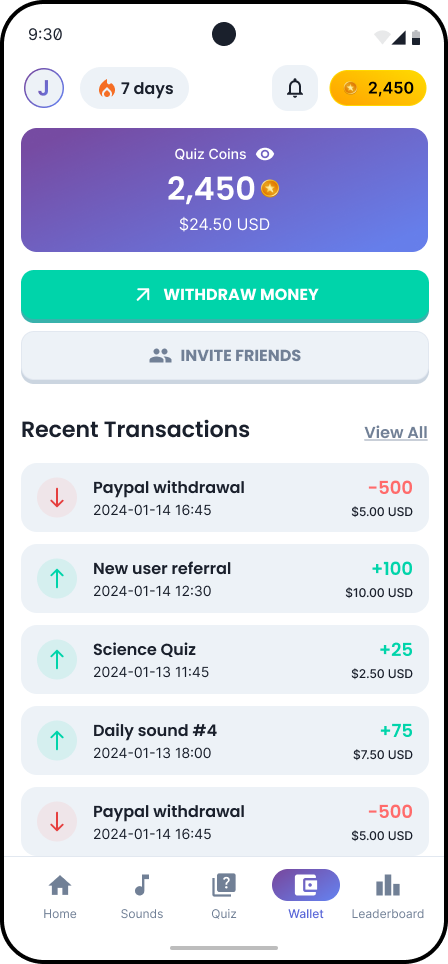 Money Melody is a gamified mobile app that combines sound-guess challenges and category-based quizzes, allowing users to earn virtual coins and withdraw real cash rewards.